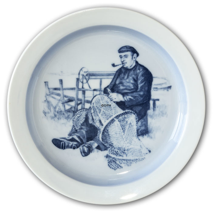 Bowl / plate with fisherman (repairing fishing nets), Royal Copenhagen no. 299001-5228