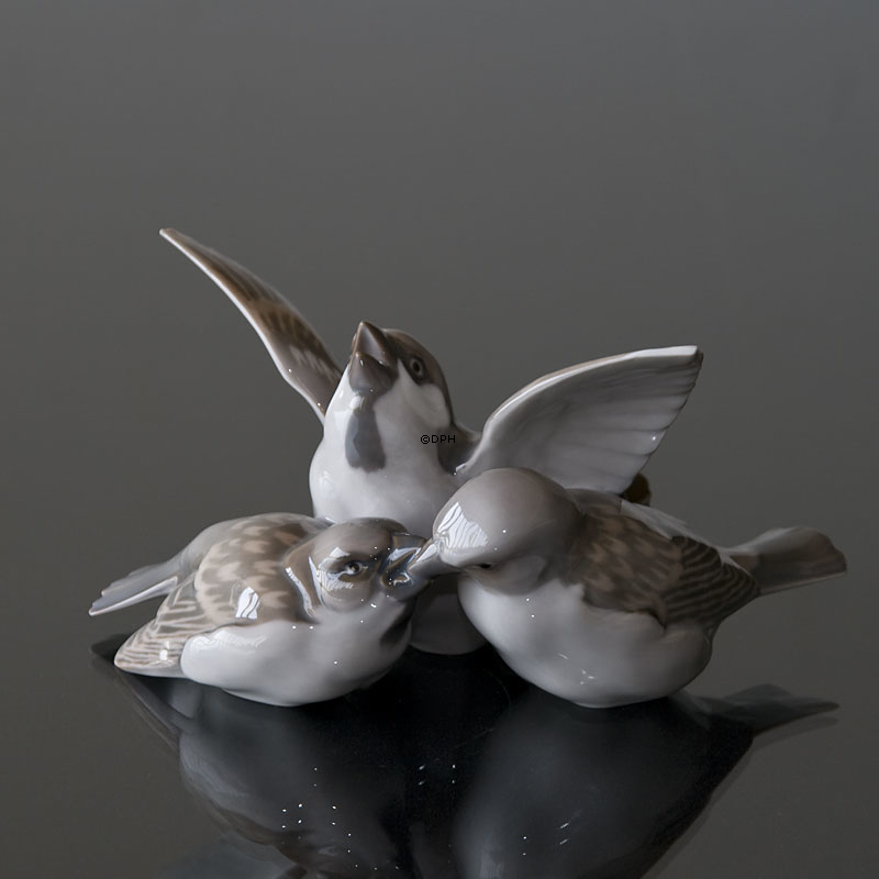 Royal Copenhagen figurine, family of sparrows Old B&G No.: 1670 Technique: Underglazed Designed by: Dahl-Jensen