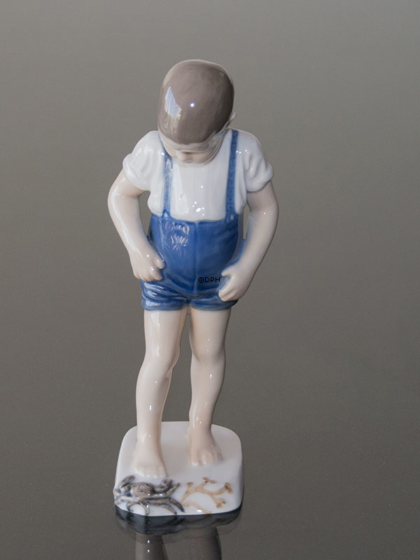 Bing & Grondahl Boy with crabbe figurine Technique: Underglazed Designed by: Ingeborg Plockross Irminger