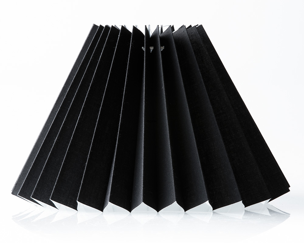 Pleated lamp shade of black chintz fabric, sidelength 15cm