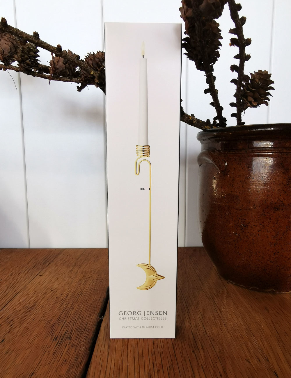Georg Jensen Christmas Candleholder 2024 with motif of Moon, designed by Sanne Lund Traberg. Finish: 18 kt. gold plated zinc alloy
