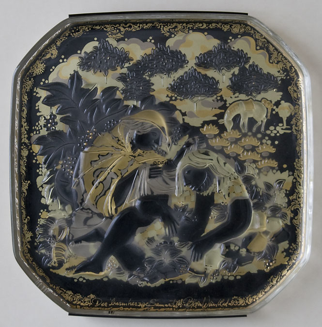 Bjorn Wiinblad Biblical parables in glass 1983 Motif: The Good Samaritan Designed by: Bjoern Wiinblad Technique: Glas Diameter: 12" - 31 cm